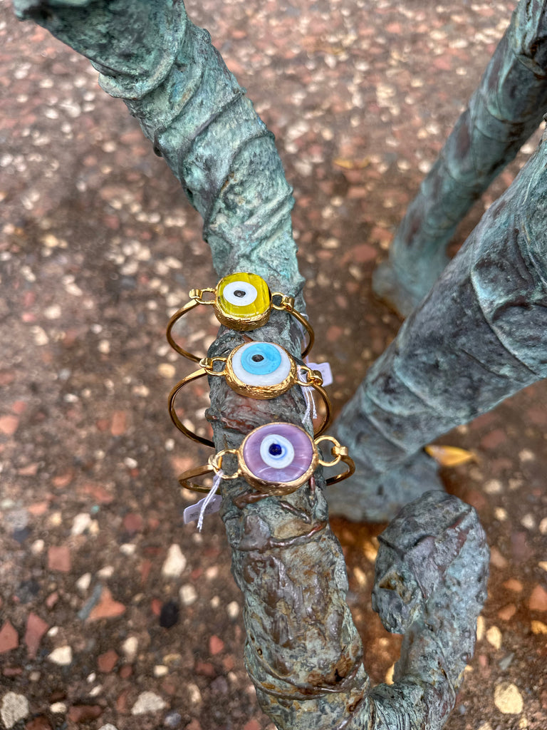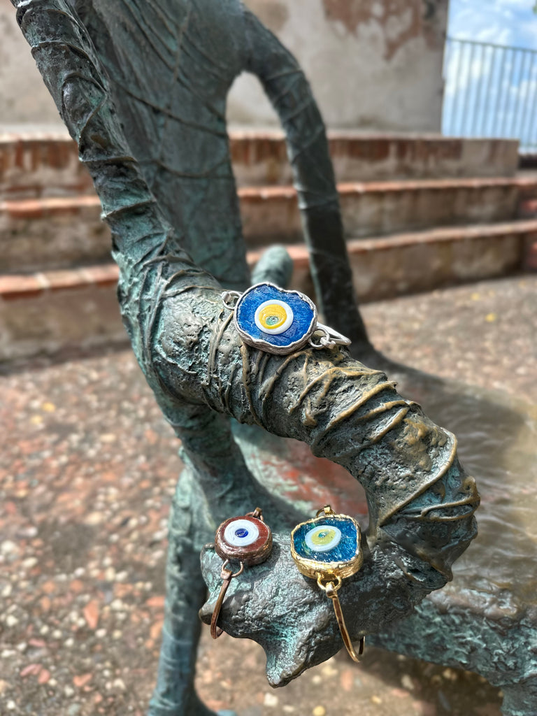 Hand blown glass cuff bracelet handmade in Turkey.